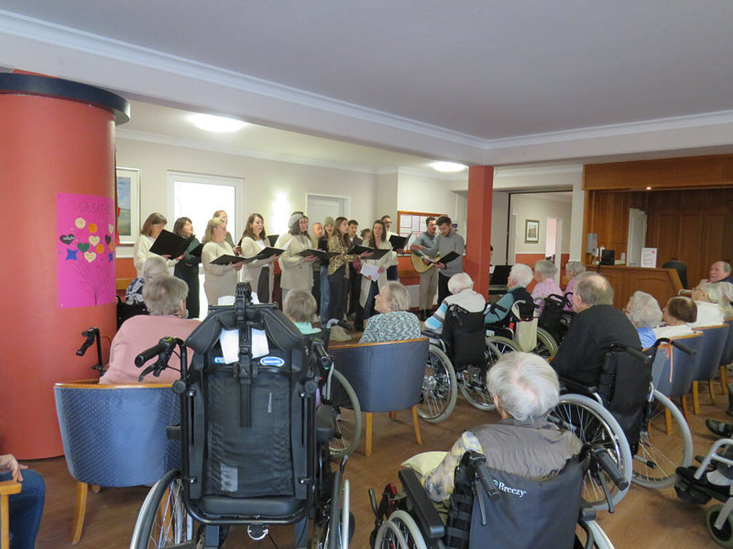 Im neuen Jahr besuchte uns am Wochenende nafch Silvester noch einmal der Jugendchor der freikirchlichen Gemeinde und gab für unsere Bewohnerinnen und Bewohner in der Lobby ein Neujahrskonzert. Unsere Bewohnerinnen und Bewohner freuten sich über die Größe des Chores und deren Stimmgewalt. Neben schönen Liedern brachte der Chor auch Neujahrsgrüße für unsere Bewohnerinnen und Bewohner mit.