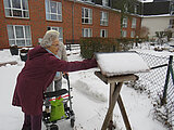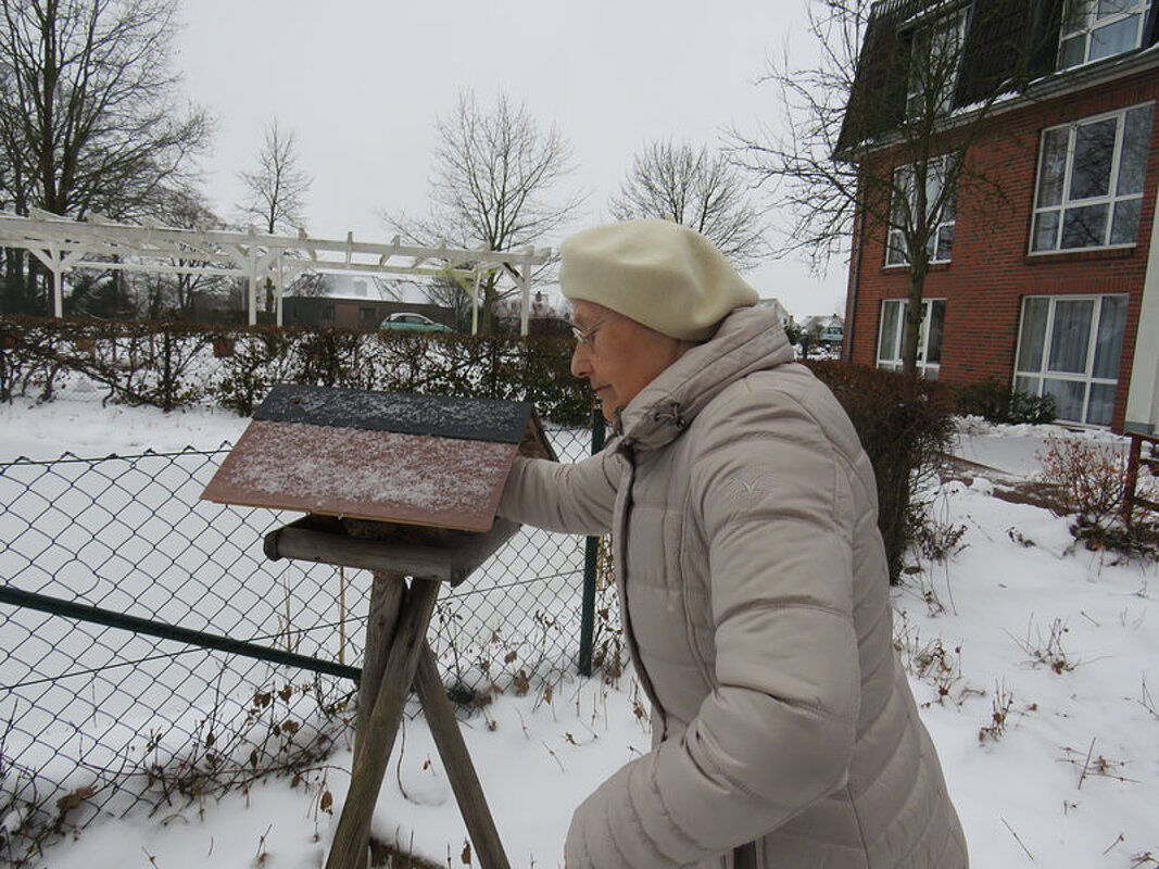 Auch im Winter werden regelmäßig gemeinsame Spaziergänge gemacht. Dieses Mal lag sogar Schnee und draußen konnte die weiße Schneelandschaft bewundert werden. Bei dem schönen Wetter lag es Nahe, dass unsere Bewohnerinnen und Bewohner dabei halfen, die Vogelhäuschen mit Körnern und Samen zu bestücken. Schon bald konnten gemeinsam die ersten Vögel beobachtet werden.