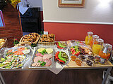 Um den Start ins neue Jahr zu feiern, wurde für unsere Bewohnerinnen und Bewohner sowie Mitarbeiterinnen und Mitarbeiter ein großer Neujahrsbrunch veranstaltet. Unsere Bewohnerinnen und Bewohner konnten nach ihrem regulären Frühstück, gemeinsam mit unseren Mitarbeiterinnen und Mitarbeitern auf das neue Jahr anstoßen. Unsere Küchencrew hat sich mächtig ins Zeug gelegt, um allen einen perfekten Brunch zu servieren.